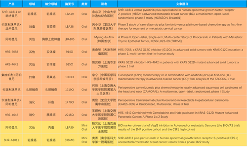 本届大会,作为中国医药创新代表性企业的利来国际真人娱乐医药共有46项抗肿瘤领域研究成果入围,包括4项最新突破性摘要(LBA)1,共涉及14项创新药。其中9项入选口头(Oral)报告,2项入选简短口头报告(Mini Oral),32项研究接收为壁报(Poster),3项研究接收为电子壁报(E-Poster),覆盖食管胃癌、妇科肿瘤、肝癌、乳腺癌、胰腺癌、肺癌、肉瘤、胆道癌、头颈鳞癌、前列腺癌、甲状腺癌等十余个领域。14款创新药包括10款已上市产品:注射用瑞康曲妥珠单抗(艾维达®,研发代号:SHR-A1811)、注射用卡瑞利珠单抗(艾瑞卡®)、苹果酸法米替尼胶囊(艾比特®)、甲磺酸阿帕替尼片(艾坦®)、马来酸吡咯替尼片(艾瑞妮®)、阿得贝利单抗注射液(艾瑞利®)、羟乙磺酸达尔西利片(艾瑞康®)、氟唑帕利胶囊(艾瑞颐®)、瑞维鲁胺片(艾瑞恩®)、海曲泊帕乙醇胺片(恒曲®),以及4款未上市产品,包括KRASG12C抑制剂HRS-7058、KRASG12D抑制剂HRS-4642、抗PD-L1/TGF-βRII双抗瑞拉芙普-α注射液(SHR-1701)、Trop-2 ADC SHR-A1921。2类新药盐酸伊立替康脂质体注射液(II)(越优力®)及国内首仿药昂丹司琼口溶膜(艾其速®)各有1项研究入选。